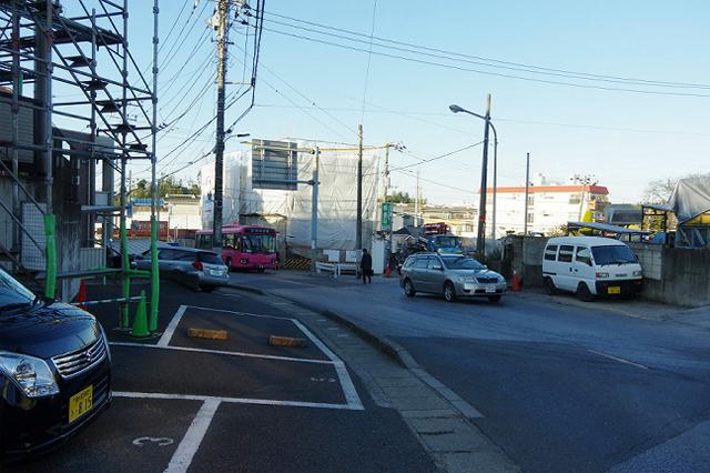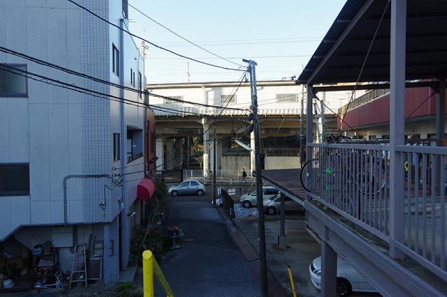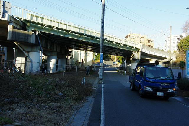 丘を回り込む県道から見えるのは、立派な高架のJR市川大野駅だ。