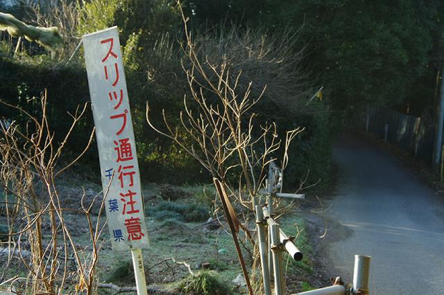右の道へ入ってすぐの場所に、県の用地を示す「千葉県」と書かれた立派な用地杭が立っていた。