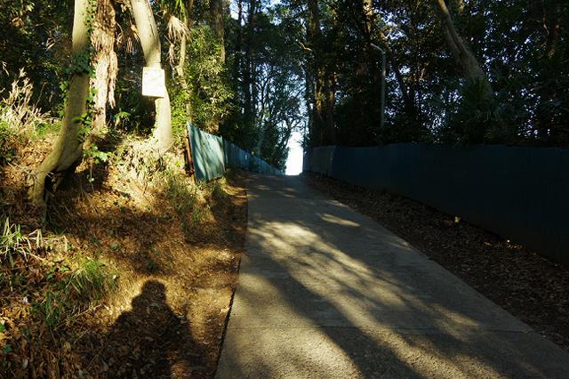 両側は私有地という通り、高いフェンスに囲まれた薄暗い区間である。
