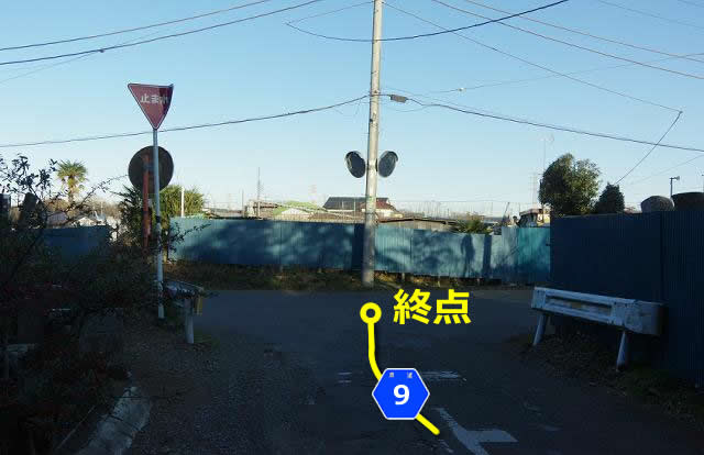 だって、「ほら、松戸市に着いたぞ」って突然ここで降ろされたら、大多数の松戸市民にとっては、可哀想なことになるぞ。市の中心部は、まだ5kmも離れている。なお、スーパーマップルデジタルなどの道路地図帳はここを終点としているが、地理院地図は、右折して200m先の国道464号交差点まで県道を伸ばしている。