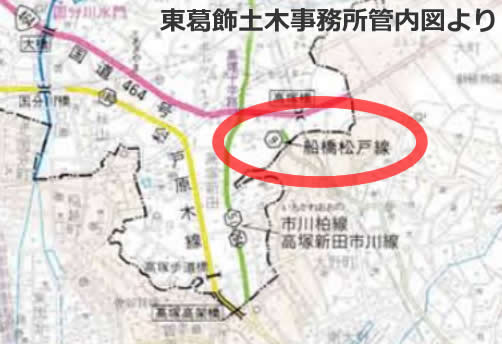 なにせ、県道の管理者である県のサイトで公表されている「東葛飾土木事務所管内図(pdf)」が、そのように描いている。(←)