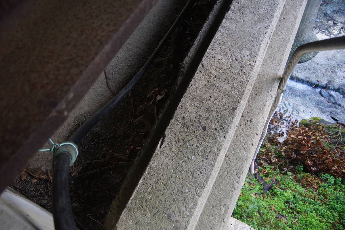 橋上を何本かのホースが渡っていて、中に水が通っているっぽい。