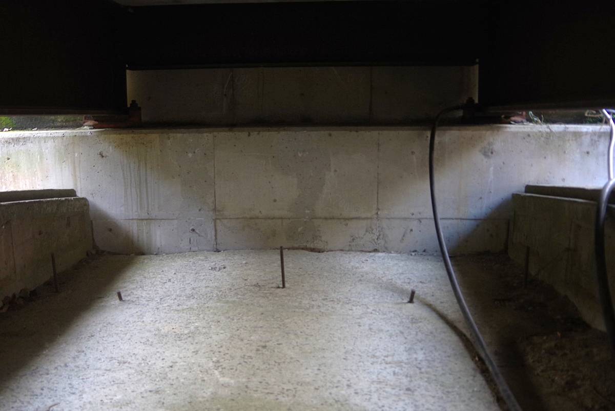 前の画像を見直して欲しいが、この「B」は現橋台の橋座部(桁が乗る部分)であり、現橋の桁に上と奥を占拠されている。もともと人が入り込む前提の場所でもないので、身を縮こまらせてようやく納まる窮屈さであった。