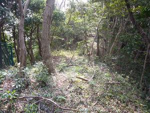 写真からは見えないが、5mほど先で道形はすっぱりと切れ落ちるように消滅している。